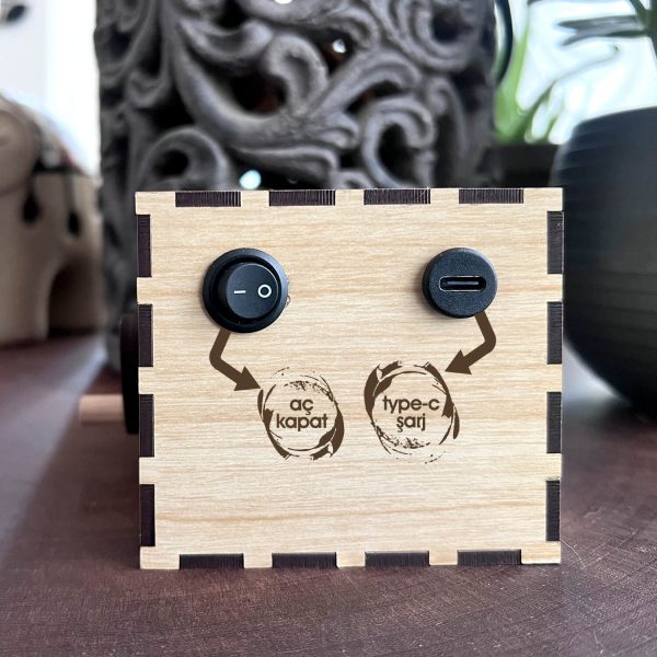 LED Işık Kontrolü: Kutunuzun arka tarafında bulunan açma/kapatma butonu ile ışığınızı kolayca açıp/kapatabilirsiniz.El Yapımı Hissinde Ceviz Kol: Nostaljik bir dokunuş, kalpten gelen bir detay hissi.